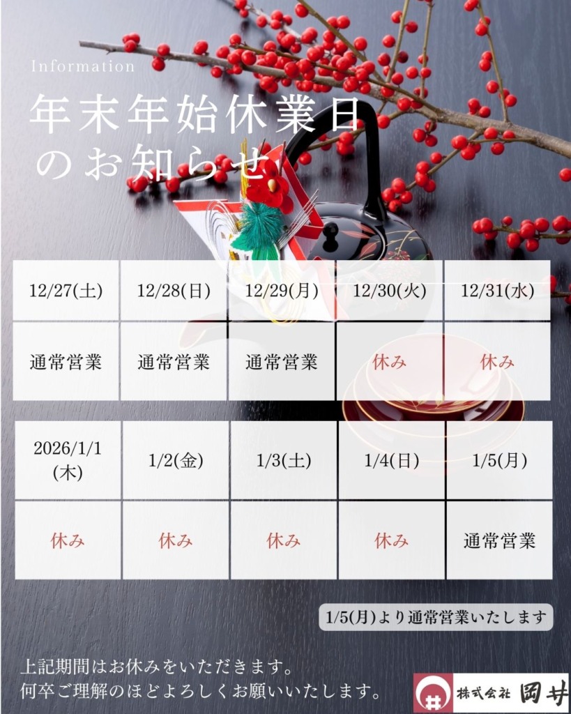 年末年始休業日のお知らせ